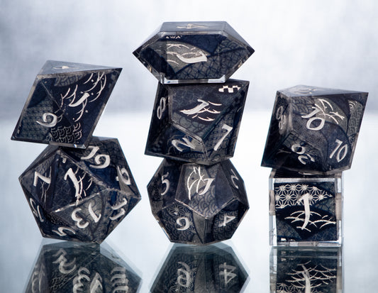 Dang! It's Sold Out!Aizome Fabric - FLAWED 7 Piece Handmade Resin Dice
