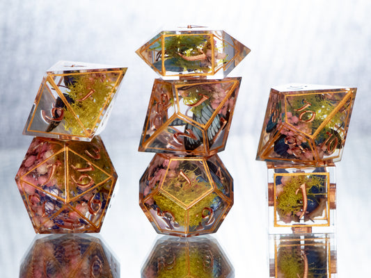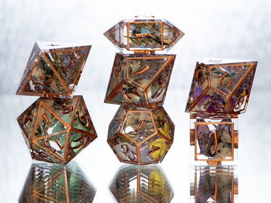 Dang! It's Sold Out!Copper Floral Lepidoptera - 7 Piece Handmade Resin Dice