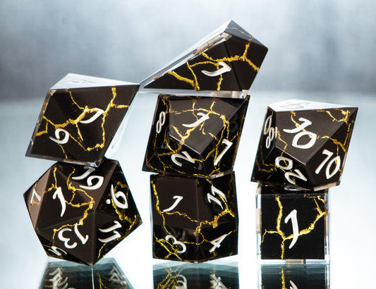Dang! It's Sold Out!Obsidian Kintsugi - Alt 7 Piece Handmade Resin Dice