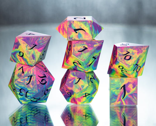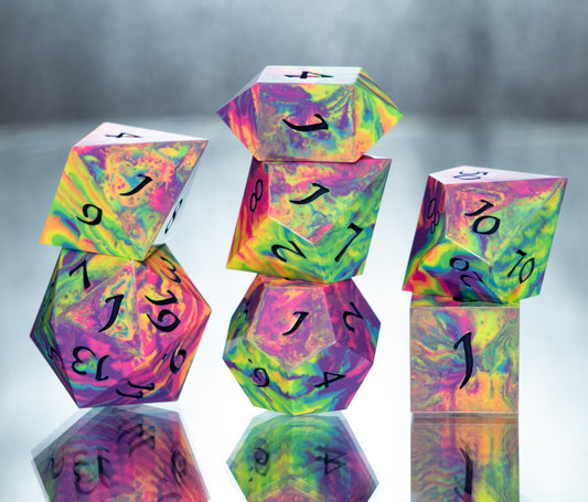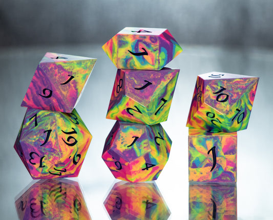Dang! It's Sold Out!Neon Rainbow Dirty Pour: 7 Piece Handmade Resin Dice