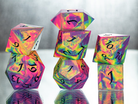 Dang! It's Sold Out!Neon Rainbow Dirty Pour: 7 Piece Handmade Resin Dice