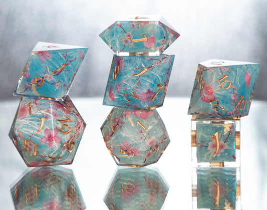 Dang! It's Sold Out!Sakura on the Water - 7 Piece Handmade Resin Dice