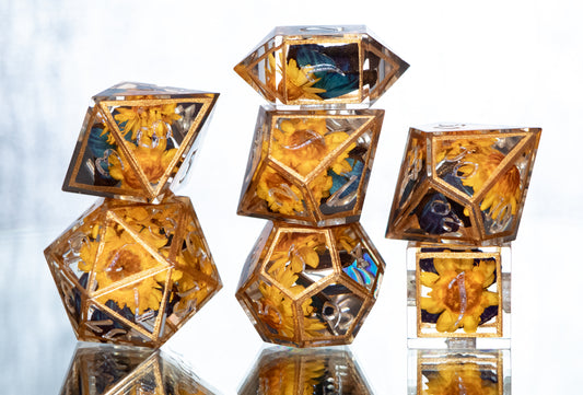 Dang! It's Sold Out!Gilded Floral Morphos - 7 Piece Handmade Resin Dice