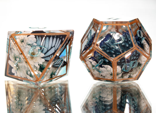 Dang! It's Sold Out!Blue Floral Lepidoptera - 7 Piece Handmade Resin Dice