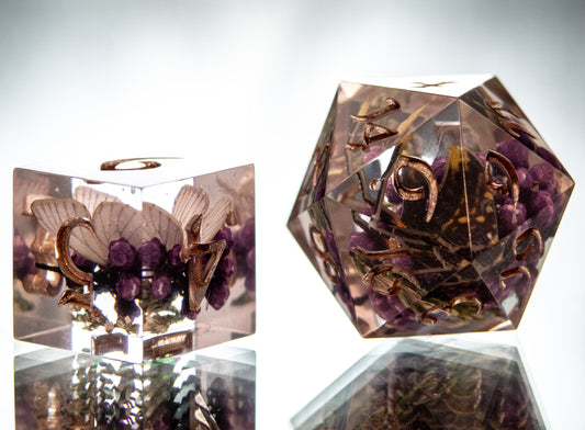 Dang! It's Sold Out!Antique Floral Lepidoptera - 7 Piece Handmade Resin Dice