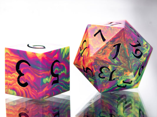 Dang! It's Sold Out!Neon Rainbow Dirty Pour: 7 Piece Handmade Resin Dice