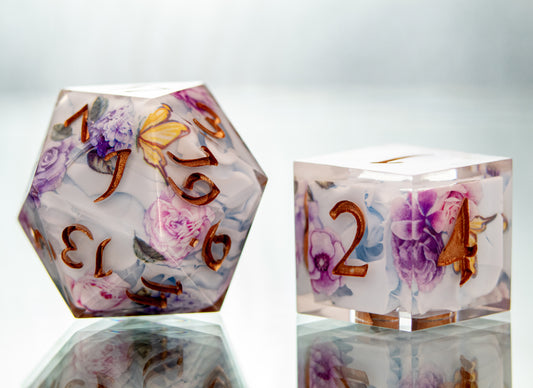 Dang! It's Sold Out!Antique Floral Lepidoptera - 7 Piece Handmade Resin Dice