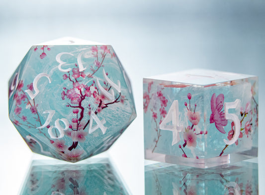 Dang! It's Sold Out!Sakura on the Water - 7 Piece Handmade Resin Dice