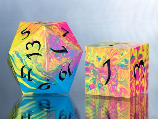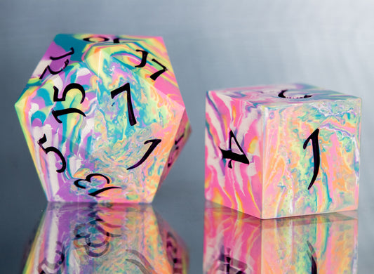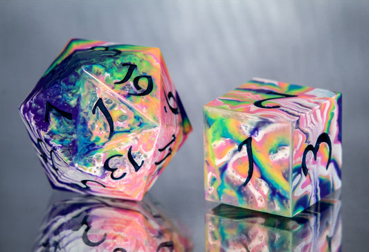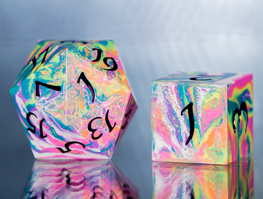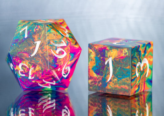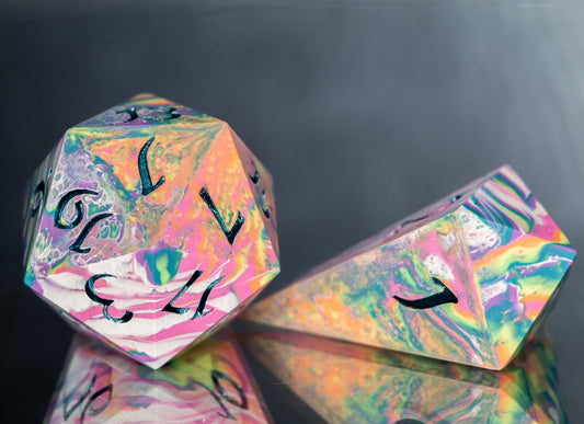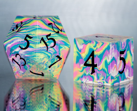 Dang! It's Sold Out!Tropical Rainbow Dirty Pour: 7 Piece Handmade Resin Dice