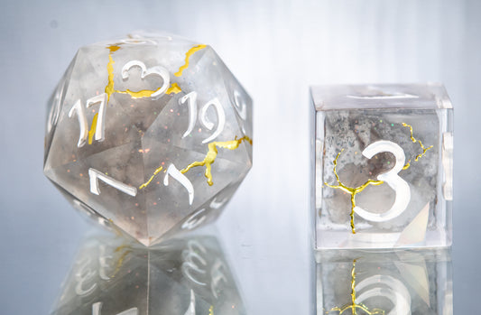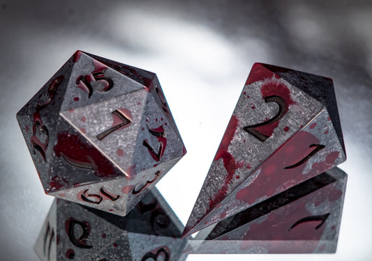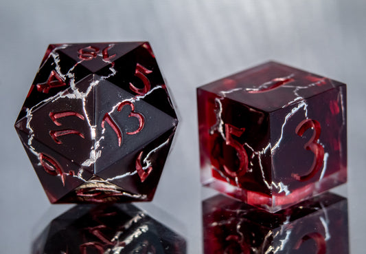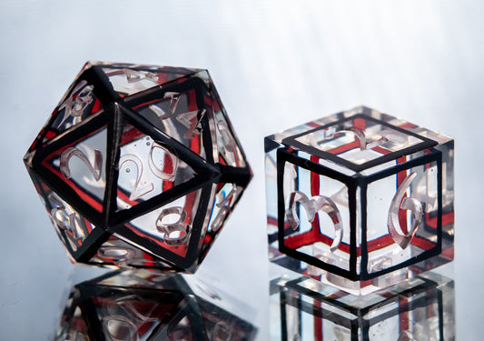 Dang! It's Sold Out!Crimson and Silver Kintsugi - 7 Piece Handmade Resin Dice