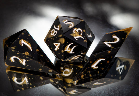 Dang! It's Sold Out!Obsidian and Gold - 7 Piece Handmade Resin Dice