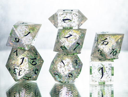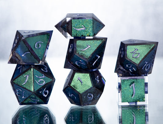 Dang! It's Sold Out!Green Glitter Bomb - 7 Piece Handmade Resin Dice