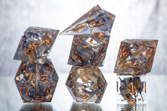 Dang! It's Sold Out!Antique Floral Morphos - 7 Piece Handmade Resin Dice