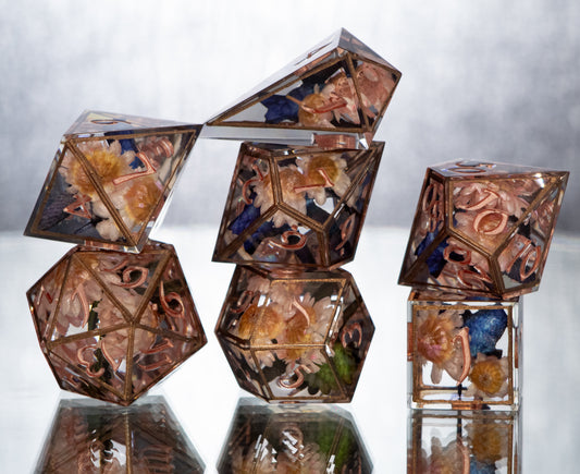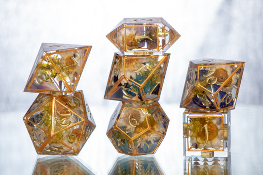 Dang! It's Sold Out!Gold Floral Lepidoptera - 7 Piece Handmade Resin Dice