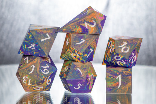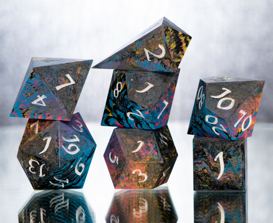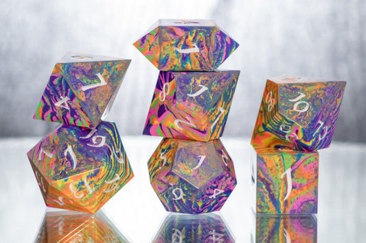 Dang! It's Sold Out!Neon Rainbow Dirty Pour: Alt 7 Piece Handmade Resin Dice