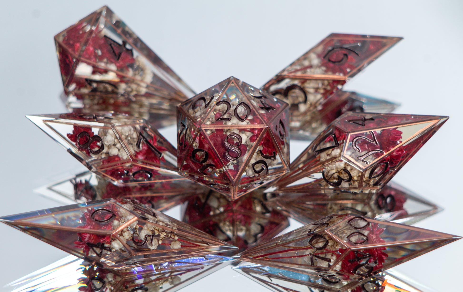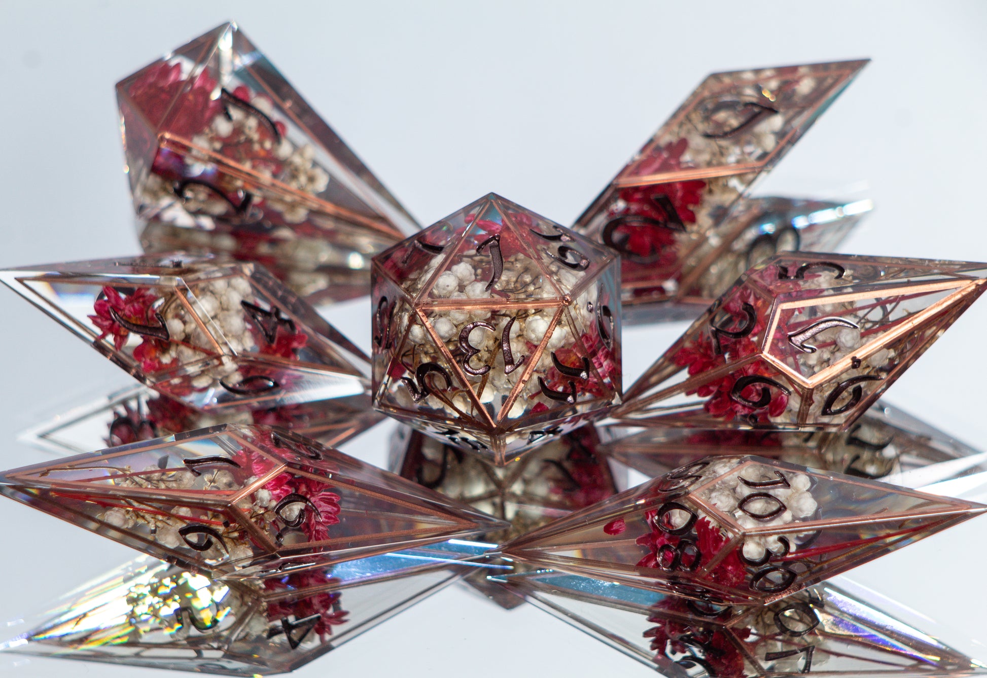 Copper Bouquet - Sharp 7 Piece Handmade Resin Dice