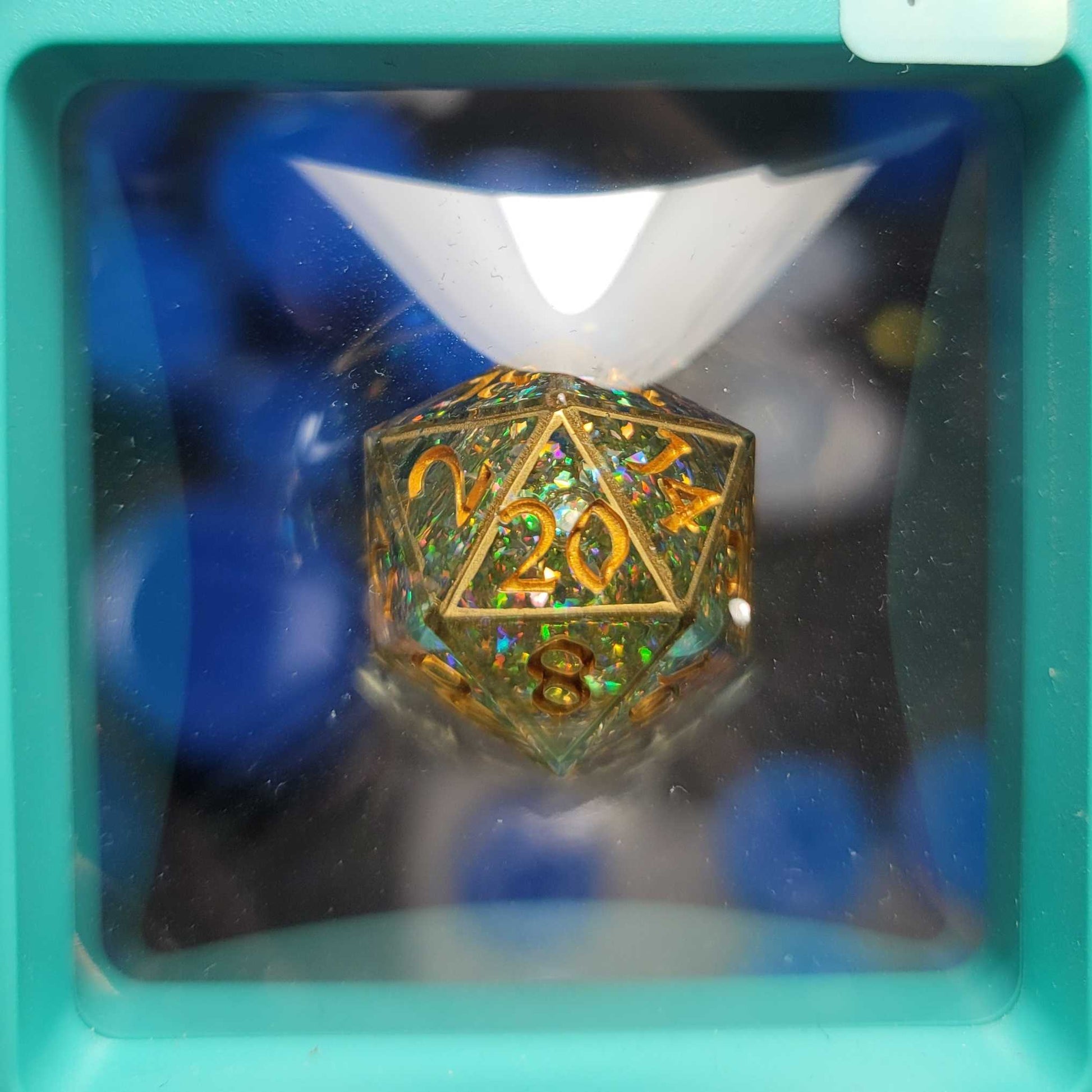Due to the handmade nature of these dice, the surfaces on some dice may have small scratches, a more shallow number (usually the 1), a duller edge or mold marks, tiny pin sized holes, a stray bubble here or there, or slightly uneven painted numbers due to how the paint dried. Dice with inclusions may also have small raised surfaces where the inclusion has pushed against the surface, or inclusions that may have breached the surface. These makers marks are all cosmetic imperfections that do not effect how these dice roll.