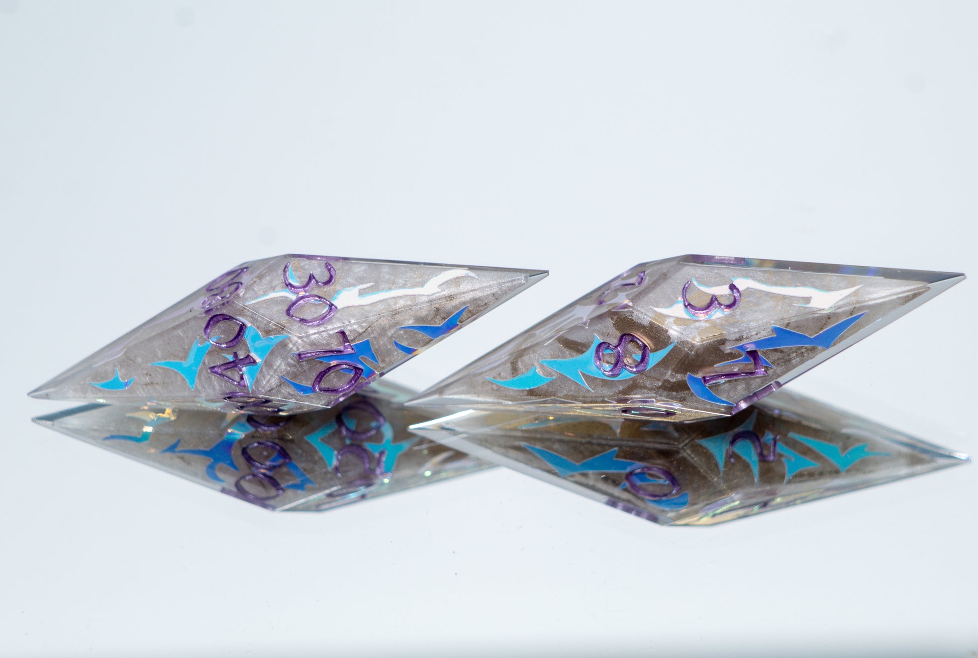 This set includes a shard D4, D8, D%, D10, D12, D6, and D20.