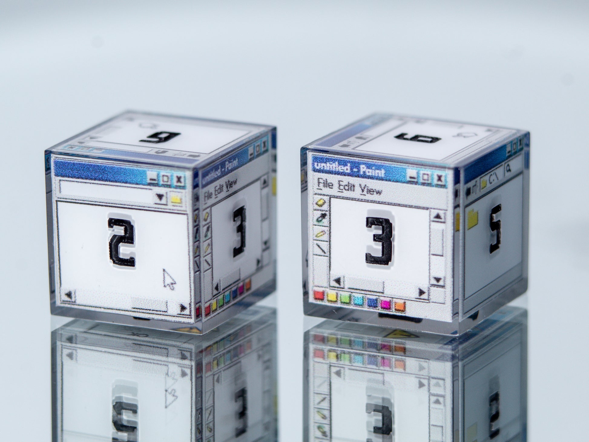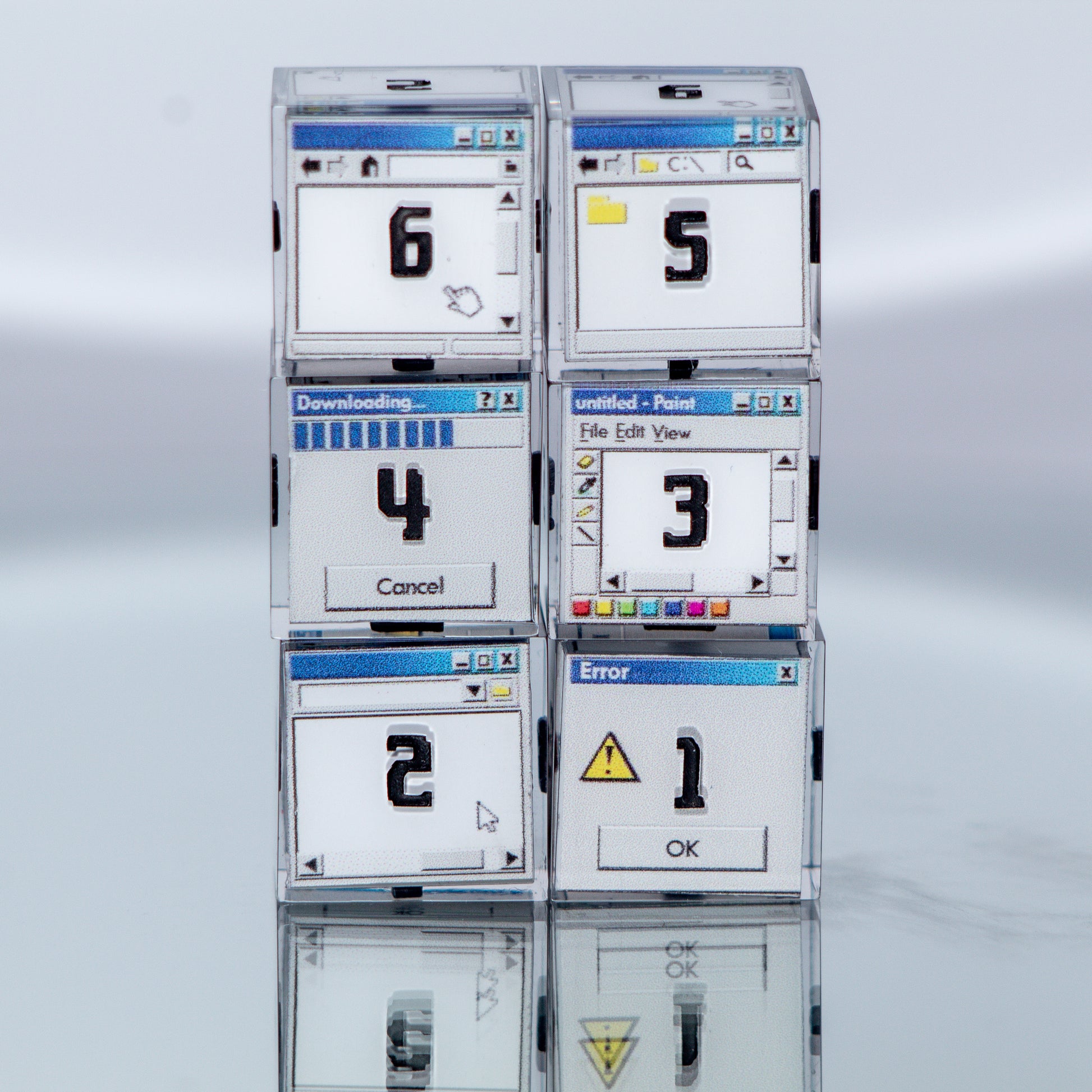 Windows D6 features D6 dice blanks with old school Windows designs on each face. They were encased in clear resin and finished with black ink. This set includes 6 D6s, each roughly 17mm.